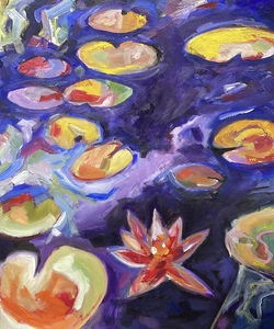 2022Een Fauvistische impressie van onze vijver. Olieverf op doek. Hangt inmiddels in Italië aan de muur.