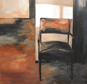 2016Een mooi ingetogen doek in omber en sienna waarin het licht zijn werk doet.